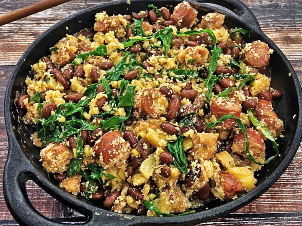 Feijão cremoso com farinha de mandioca puro conforto em cada colherada.